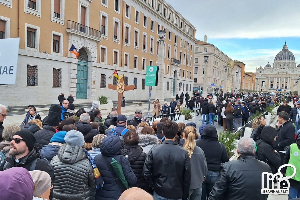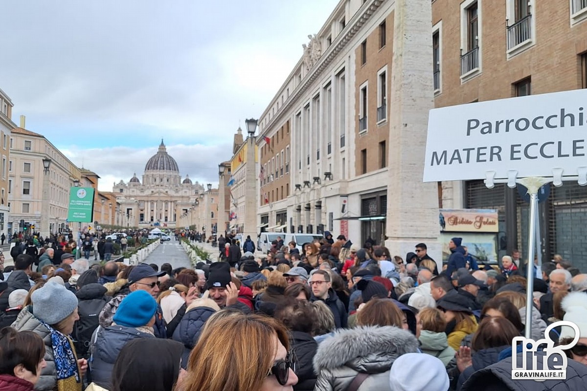 Sono partiti di notte, con 2 pullman alla volta della capitale e arrivati alle prime luci dell'alba di sabato 22 novembre 2025, i pellegrini gravinesi guidati da don Stefano Nacucchi, parroco della parrocchia "Mater Ecclesiae" di Gravina, che si sono diretti in piazza San Pietro ricevuti in udienza dal Santo Padre Papa Leone XIV. Successivamente, nel primo pomeriggio, tutti i pellegrini hanno avuto la possibilità di varcare la Porta Santa, aperta in occasione dell'anno giubilare.