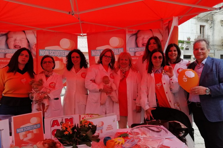 Una piazza colorata di arancione, palline antistress dello stesso colore, palloncini, dimostrazioni attraverso bambole ma, soprattutto, la professionalità dei medici pediatri al servizio della gente nei luoghi affollati del passeggio domenicale per dimostrare l'importanza che una campagna di sensibilizzazione ha come impatto sulle famiglie creando consapevolezza, traducendosi in azioni concrete e proteggendo, dunque, i bambini neonati da danni irreversibili.